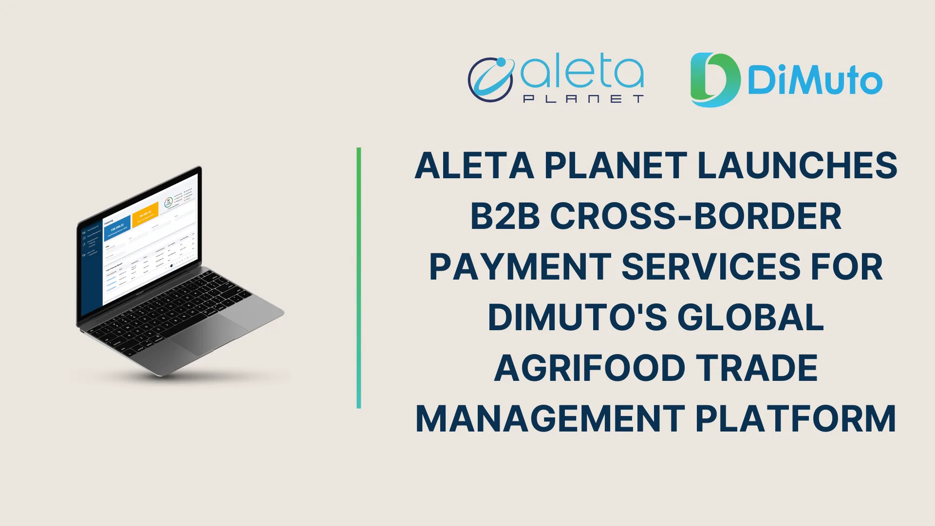 Singapore, 17 January 2023 – Global fintech player Aleta Planet said today that customers using DiMuto’s AgriFood trade solutions to track the movements of perishable goods through the global supply chain can now use its payment solutions.
