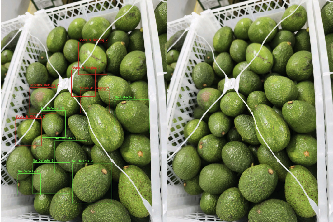 Image of DiMuto’s PQAI technology finding the defects in a carton of avocados during pre-shipment operations
