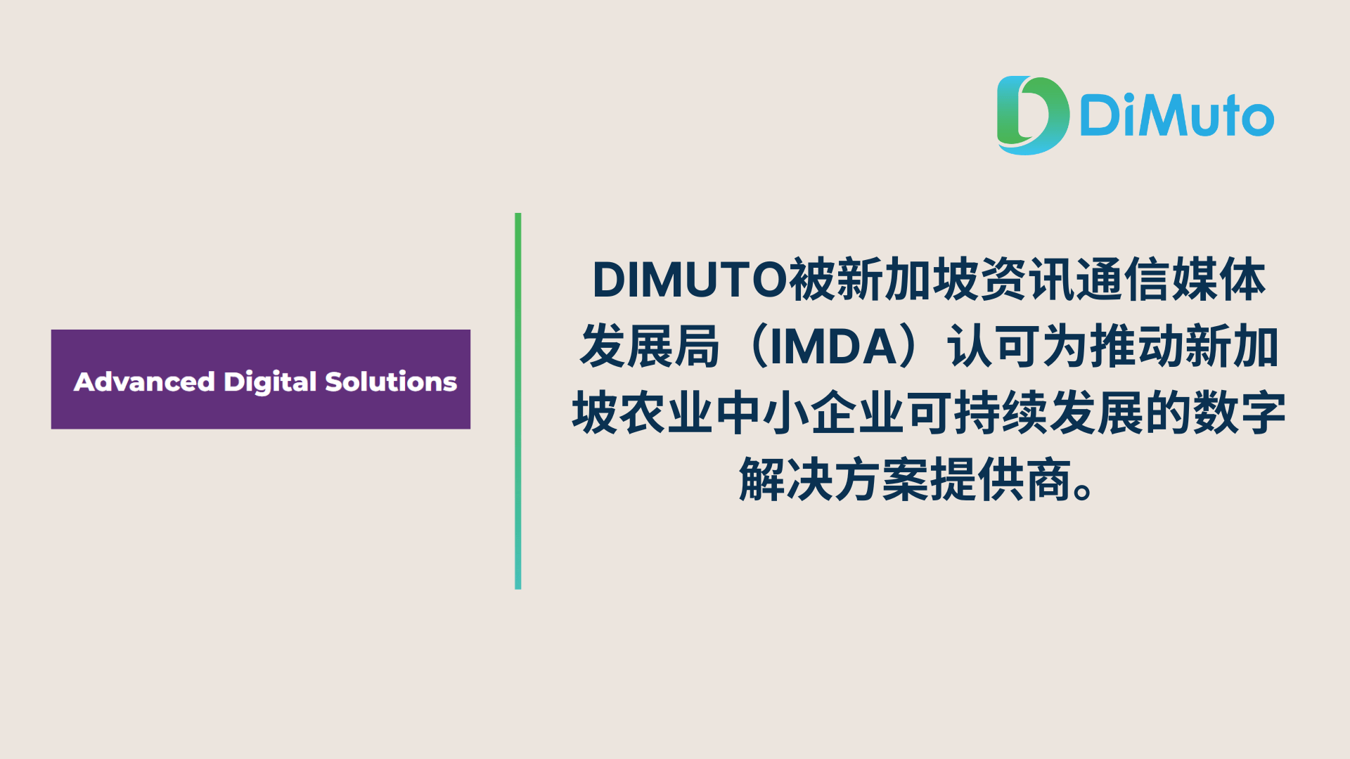 DiMuto被新加坡资讯通信媒体发展局(IMDA)认可为推动新加坡农业中小企业可持续发展的数字解决方案提供商。